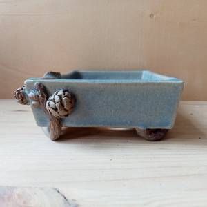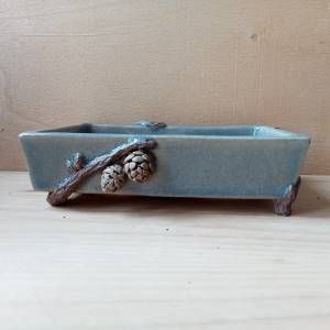 Vaso rettangolare in gres crema smaltato, rami e pigne in gres non smaltato