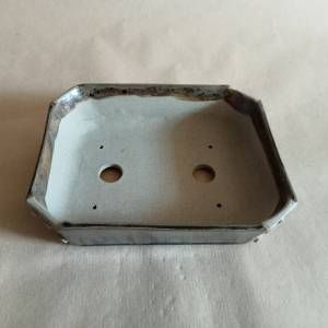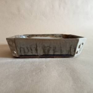 Vaso rettangolare con angoli smussati. Smaltato sui lati lunghi, non smaltato con decorazioni a rilievo sugli angoli.