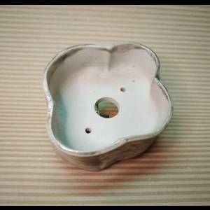 Vaso quadrilobato per mame bonsai, in gres smaltato.