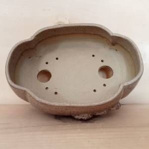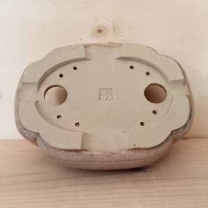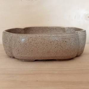 Vaso per shohin bonsai a forma di nuvola con famigliola di ricci a rilievo. In gres smaltato.
