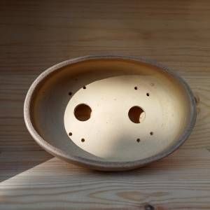 Vaso ovale in gres crema, smalto "Gheriglio" a base di cenere.