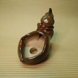 Vaso per kusamono o shitakusa a forma di zucca, in gres smaltato.