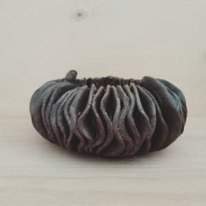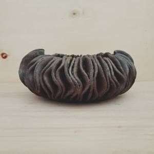 Vaso scultura ovale in gres nero smaltato dall'aspetto rustico.