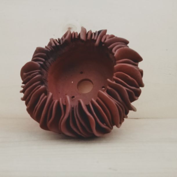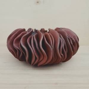 Vaso scultura rotondo in gres rosso non smaltato sfumato con ossidi.