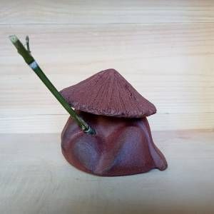 Pellegrino addormentato realizzato in gres non smaltato. È dotato di 2 bastoni: uno in bambù e uno in gres.