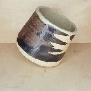 Realizzata in gres crema, l'interno è smaltato con cristallina, all'esterno smalto nero a base di cenrere di faggio di mia produzione.