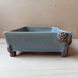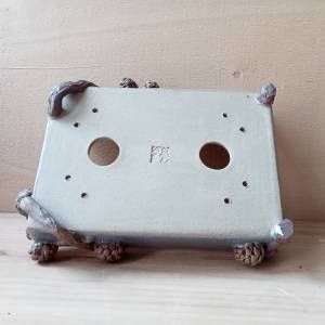 Vaso rettangolare in gres crema smaltato, rami e pigne in gres non smaltato