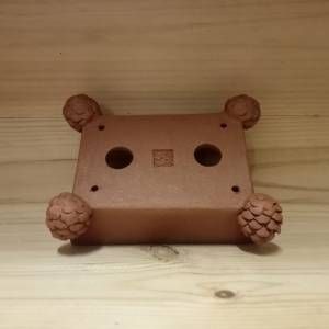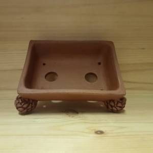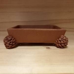 Piccolo vaso rettangolare in gres non smaltato con piedini a forma di pigna.