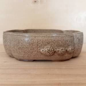 Vaso per shohin bonsai a forma di nuvola con famigliola di ricci a rilievo. In gres smaltato.